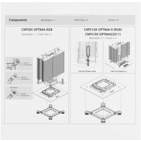 крепление кулера, для сокета LGA 1700, подходит для кулеров ZALMAN CNPS10X Optima 2011, CNPS10X Optima II Black RGB, CNPS10X Optima II White RGB, CNPS10X Optima II Black, CNPS10X Optima II, CNPS9X Optima RGB