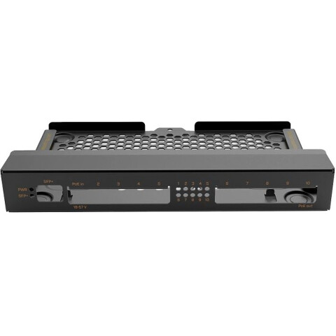 крепление-корпус для настенного монтажа маршрутизаторов линейки RB4011, конструкция позволяет подключить Ethernet-кабели к устройству до его установки в крепление