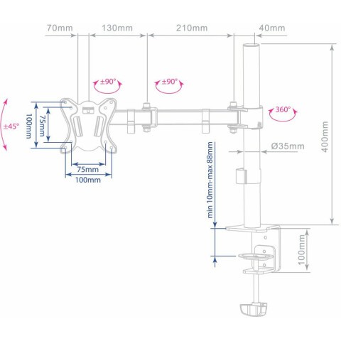 для монитора, настольный, 15-32", до 12 кг, выдвижной, наклонный, поворотный, чёрный