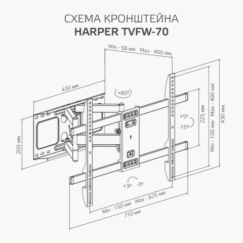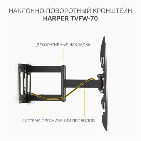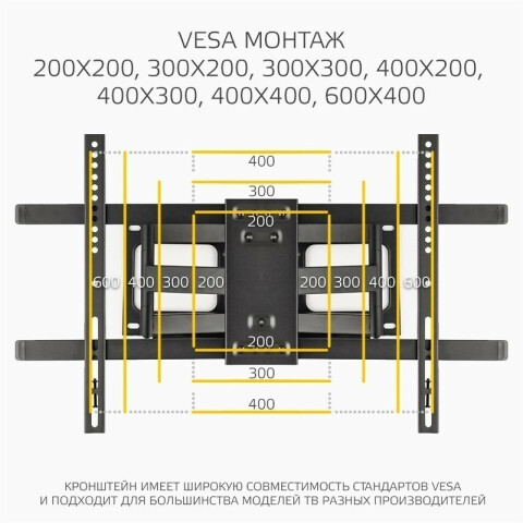 для телевизора/панели, настенный, 37-80", до 60 кг, наклонный, поворотный, чёрный