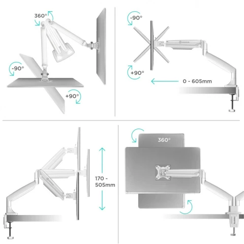 для монитора, настольный, 13-32", до 9 кг, выдвижной, наклонный, поворотный, белый