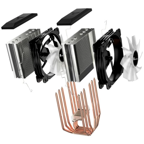 для процессора, Socket 775, 115x/1200, 1356, 1366, 2011, 2011-3, AM2, AM2+, AM3, AM3+, AM4, AM5, FM1, FM2, FM2+, 2x120 мм, 700-1500 об/мин, TDP 200 Вт, разноцветная подсветка
