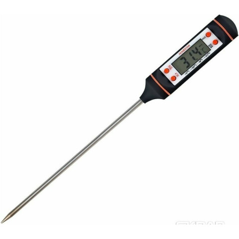 электронный кулинарный термощуп, от -50°C до +300°C, отображение максимальной и минимальной температуры, автоотключение питания, прозрачный бокс для хранения, батарейка LR44 в комплекте