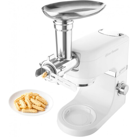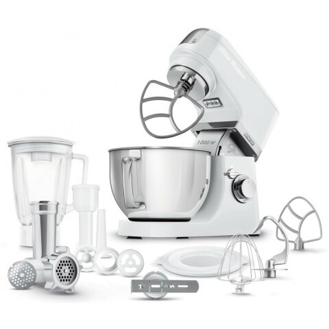 мощность: 1000 Вт, объем чаши: 4.5 л, блендер из ударопрочного стекла, мясорубка, насадка для взбивания, корпус из нержавеющей стали