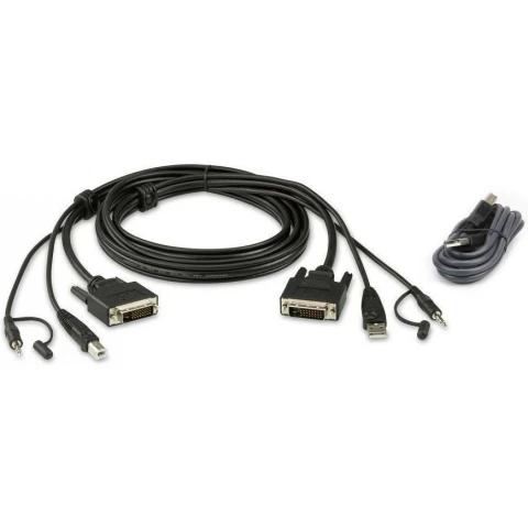 комплект защищенных кабелей для KVM-переключателя, интерфейс источника: USB type A, mini-Jack 3.5 мм, DVI-D, станционный интерфейс: USB type B, mini-Jack 3.5 мм, DVI-D