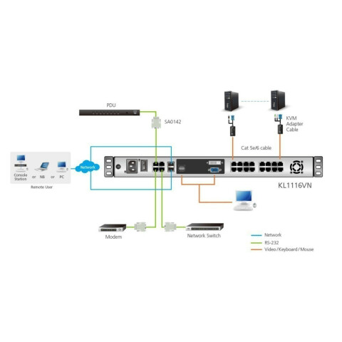 16-портовый KVM переключатель Dual Rail с 19" ЖК-дисплеем