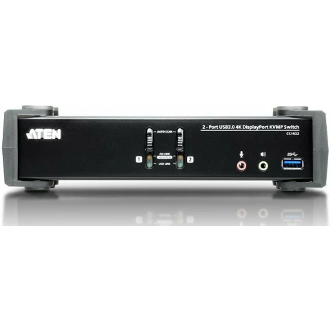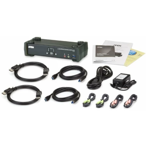 2-портовый USB 3.0, DisplayPort, KVMP коммутатор с концентратором USB 3.1 Gen1 и объемным звуком 2.1, видео 4K UHD, режим MST, автосканирования, управление с единой консоли двумя ПК и двумя переф. устр-ми