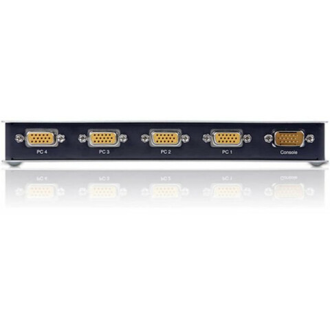 KVM-переключатель для 4-х системных блоков, управление: кнопки на передней панели (по числу портов, для быстрого выбора активного порта), 4 порта PS/2 KVM, VGA (2048x1536), 200x81.5x25мм, 4 KVM-кабеля 1.2м/1.8м