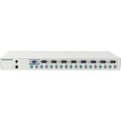 8-портовый КВМ-переключатель с экранным меню, консольные интерфейсы: VGA, HDB(15-pin), 2xPS/2; интерфейсы переключения питания: 8xVGA HDB(15-pin), DC-in