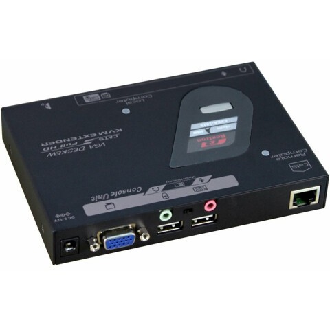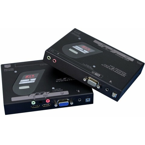 KVM удлинитель, максимальное расстояние между двумя блоками: 200 м, кнопки: Control Status Selection, VGA (1920 x 1200), UXGA (1600 x 1200), Audio Jack