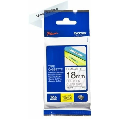 ламинированная лента для печати наклеек, чёрный на прозрачном фоне, 18мм х 8м