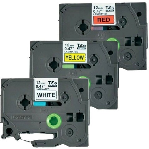 металлизированная лента для печати наклеек, чёрный на красном, жёлтом и белом фонах, 12мм х 8м, 3шт