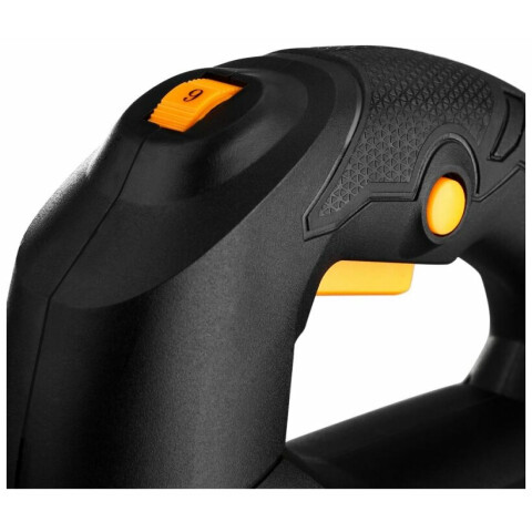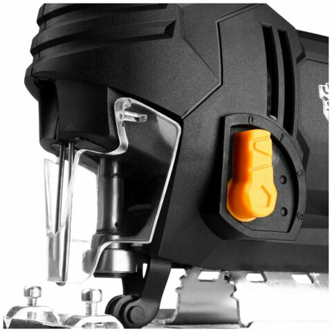 питание от сети, мощность 850 Вт, скорость 3000 ходов/мин, маятниковый ход, быстрозажимное крепление пилки, регулировка частоты хода