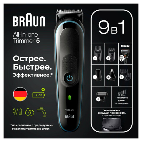 для бороды и усов, для стрижки в носу и ушах, для стрижки волос, для тела, питания: автономное, длина стрижки: 0.5-21 мм, число установок длины: 13