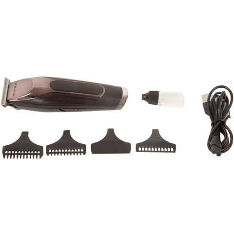 назначение: для стрижки волос, материал лезвий: нержавеющая сталь, длина стрижки: 5­–15 мм, регулировка длины стрижки: смена насадок, питание: автономное, время работы от аккумулятора: до 60 мин