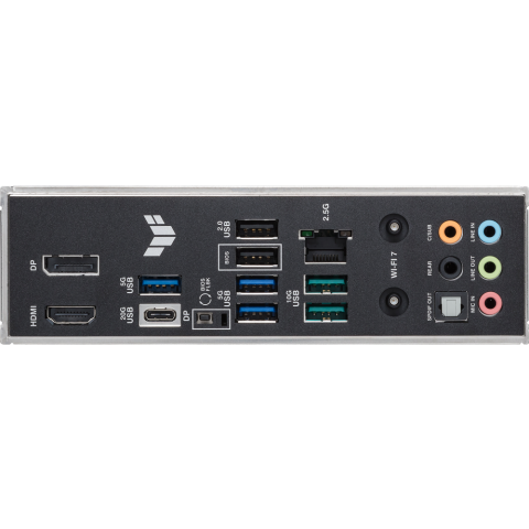 ATX, сокет LGA 1851, чипсет Intel B860, 4xDDR5, PCI-E 5.0, PCI-E 4.0, 3xM.2, сеть: 2.5 Гбит/с, Wi-Fi, Bluetooth, HDMI, DisplayPort, подсветка