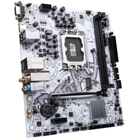 сокет LGA 1700, чипсет Intel H610, 4xDDR4, PCI-E 4.0, M.2, сеть: 1 Гбит/с, Wi-Fi, Bluetooth, HDMI, mATX
