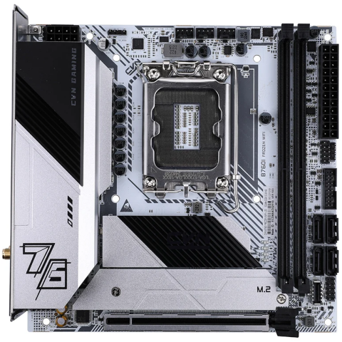 сокет LGA 1700, чипсет Intel B760, 2xDDR4, PCI-E 5.0, 2xM.2, сеть: 2.5 Гбит/с, Wi-Fi, Bluetooth, HDMI, DisplayPort, Mini-ITX