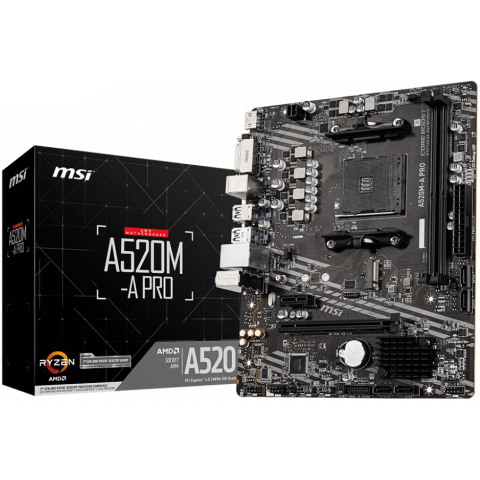 AM4, AMD A520, 2xDDR4, 4xUSB 3.2 Gen1, DVI, HDMI, mATX