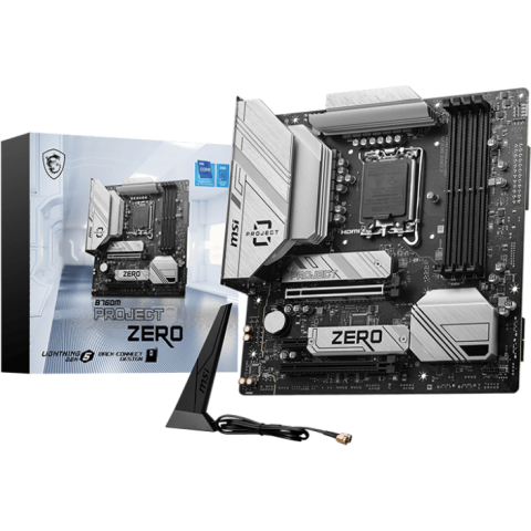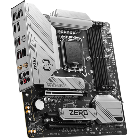 сокет LGA 1700, чипсет Intel B760, 4xDDR5, PCI-E 5.0, PCI-E 4.0, 2xM.2, сеть: 2.5 Гбит/с, Wi-Fi, Bluetooth, HDMI, DisplayPort, mATX