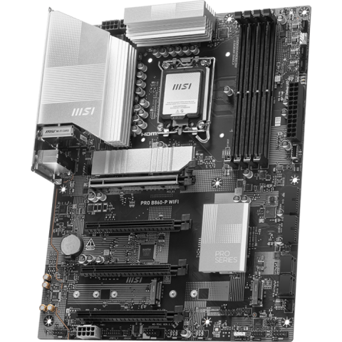 ATX, сокет LGA 1851, чипсет Intel B860, 4xDDR5, PCI-E 5.0, 3xPCI-E 4.0, 3xM.2, сеть: 5 Гбит/с, Wi-Fi, Bluetooth, HDMI, DisplayPort, Thunderbolt
