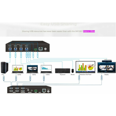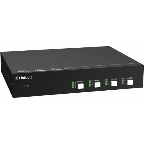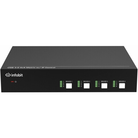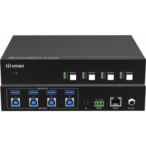 матричный коммутатор USB, поддержка USB 3.0, вход: 4x USB, выход: 4x USB-B, управление по IP, RS232, RJ-45, mini jack 3.5мм, 3-pin terminal blocks