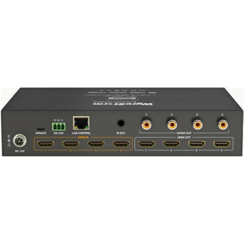 Бренд: WyreStorm4K HDR матричный коммутатор 4х4 с масштабируемыми выходами и деэмбеддированием, благодаря поддержке чистого HDMI 18 Гбит/с позволяет независимо направлять до четырех источников UHD 4K на четыре UHD-дисплея