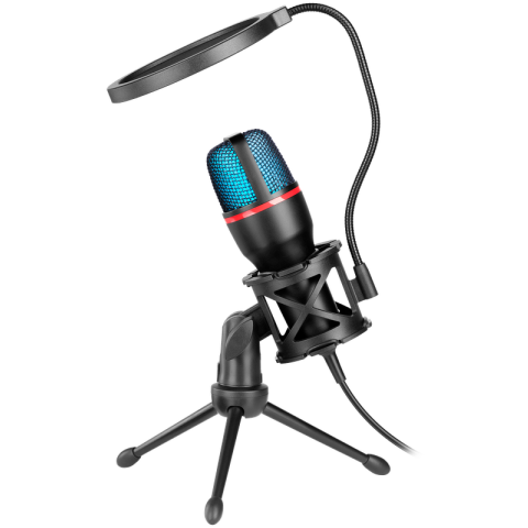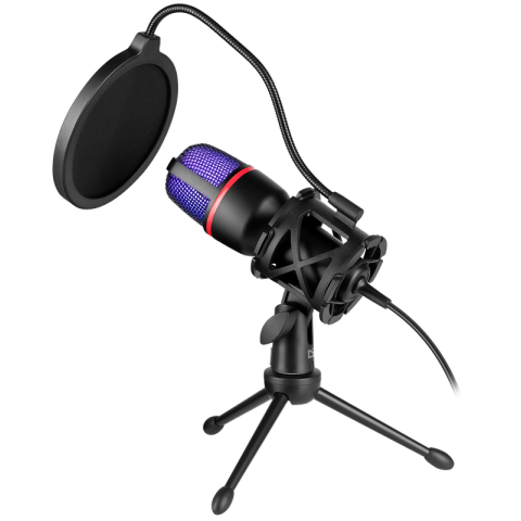 настольный микрофон, электретный, всенаправленный, 2200 Ом, подключение через USB, кабель 1.5 см, подсветка