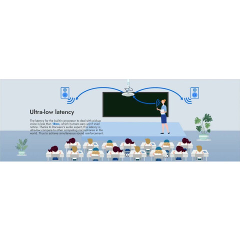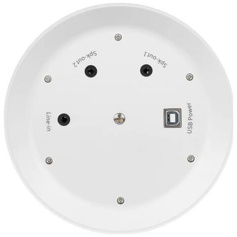 цифровой микрофонный массив (6 встроен) с автослежением, шумоподавлением и формированием луча захвата (до 3 м) в сторону спикера, подключение MiniJack 3.5 (до 5 м), питание USB-B