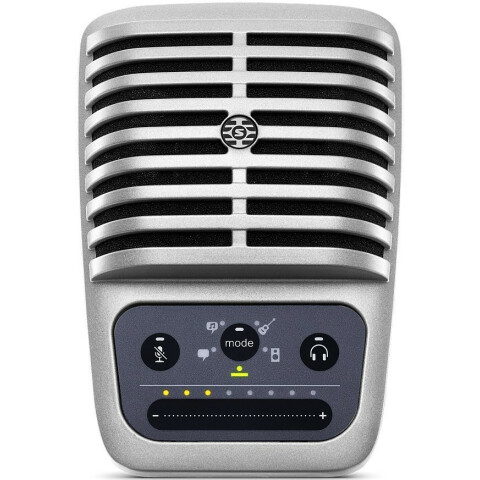 цифровой кардиоидный конденсаторный микрофон Shure MOTIV с большой диафрагмой, 20-20000 Гц, диапазон регулирования усиления: от 0 до +36 дБ, питание от разъёма USB или Lightning
