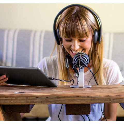 электретный микрофон (конденсаторный), кардиоидный, частотный диапазон: 20-20000Гц, чувствительность: -40 дБ, частота дискредитации: 48 кГц, разрядность АЦП: 24 бит, разъём USB, выход на наушники