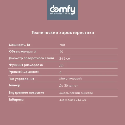 объём 20 л, 700 Вт, механическое управление, поворотные переключатели