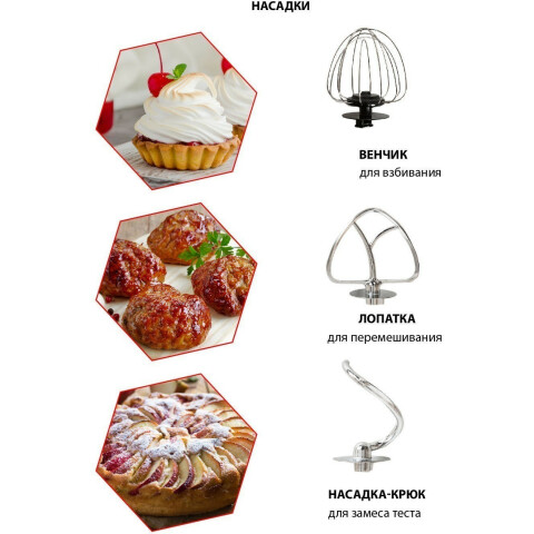 стационарный миксер, мощность: 1000 Вт, число скоростей: 6, количество насадок: 3, импульсный режим