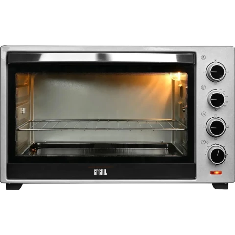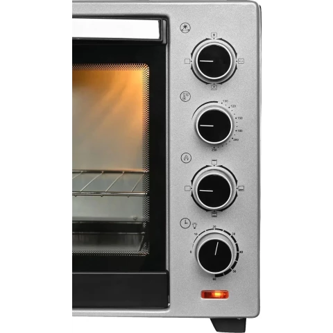 мощность 2000 Вт, объём 60 л, макс. температура 250 °C, 4 режима работы, механическое управление, гриль, конвекция, вертел