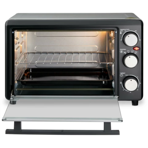 мощность 1200 Вт, объём 18 л, макс. температура 250 °C, 3 режима работы, механическое управление