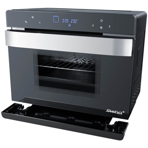 мини-печь, 1900 Вт, объём камеры: 30 л, управление: электронное, таймер: 420 минут, режимы температуры: 0-230 С°, конвекция, 49 автоматических программ, в комплекте: решетка/противень/поддон для крошек