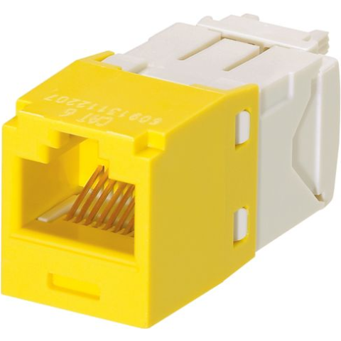 универсальный модуль Mini-Com TX6 PLUS, медный, неэкранированный (UTP), категория 6, RJ45, 8-позиционный, 8-проводной (8P8C), T568A/B, тип Giga-TX, заделочный наконечник с маркировкой, жёлтый
