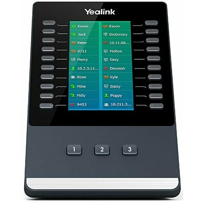 модуль расширения для телефонов серии Yealink SIP-T5, большой цветной экран 272 х 480, 20 кнопок с двухцветными светодиодами, 3 кнопки перелистывания страниц экрана, регулировка угла наклона (2 положения), подключения через USB-кабель