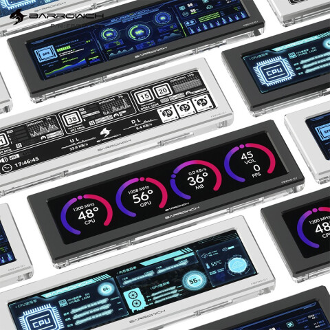 Бренд: Barrowchвнешний дисплей для мониторинга, IPS 1920x480, прозрачная задняя панель из акрила оснащена системой освещения Barrow-Irc2.0, Mini HDMI, питание: microUSB