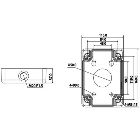 алюминиевая монтажная коробка, для уличных видеокамер серии HFWxxE, максимальная нагрузка 7кг