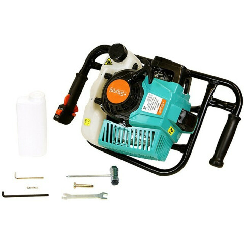 мощность 2.5 кВт, 3.4 л.с., диаметр соединения 20 мм, диаметр бура 350 мм, поверхность для бурения: грунт, лед, для одного человека