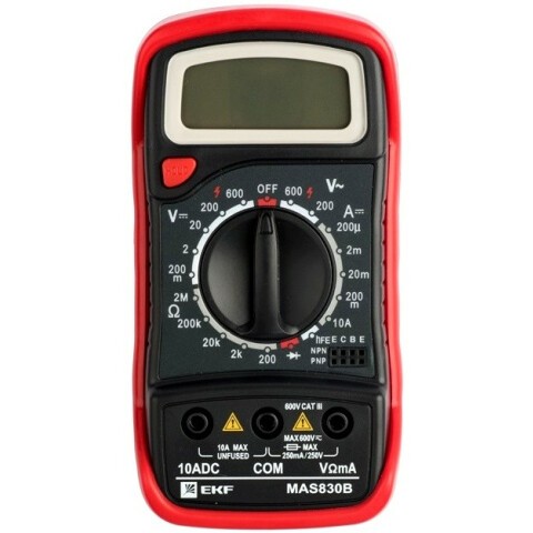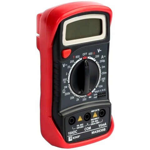 цифровой мультиметр, макс. изм. напряжения/силы тока/сопротивления: 600В/10A/2МОм, мин. разреш. способность изм. DC: 0.1мВ, тест на непрерывность, категория изм. цепи: 3, ручной выбор диап. измерений