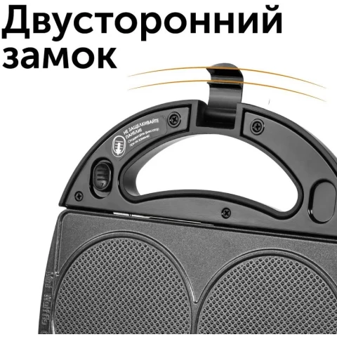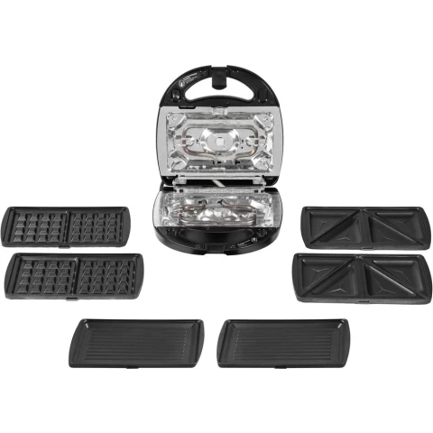 компактная мини-пекарня с механическим управлением, 700 Вт, три набора сменных панелей: пластины для венских вафель, сэндвичей, гриля, антипригарное покрытие, индикаторы включения и нагрева