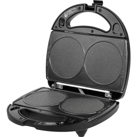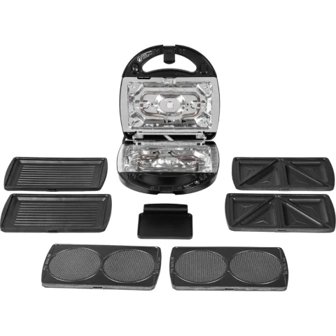 компактная мини-пекарня с механическим управлением, 700 Вт, три набора сменных панелей: пластины для вафель, гриля, кренделей, антипригарное покрытие, индикаторы включения и нагрева