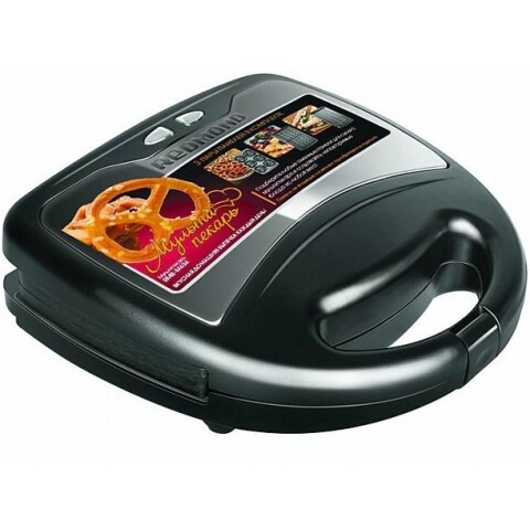 мультипекарь, мощность 700Вт, 3 металлические съёмные панели: для приготовления вафель, гриля и мини-крендельков, индикатор работы и нагрева, 236x236x101мм