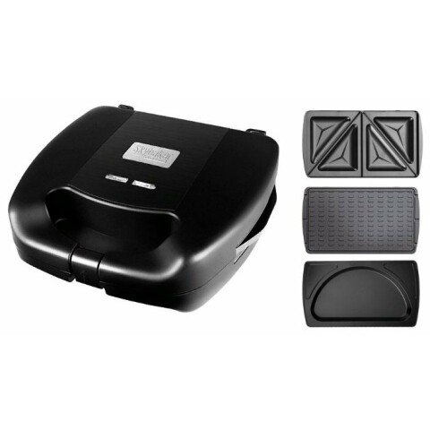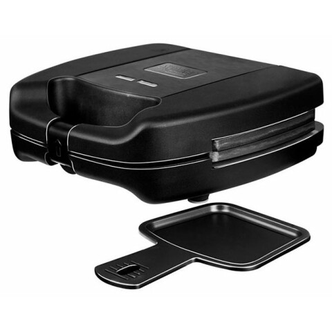 мультипекарь, мощность 700 Вт, механическое управление, пластиковый корпус, панель: омлет, вафли, сэндвичи, вид панели для вафель: тонкие, антипригарное покрытие, длина шнура 0.8 м, индикатор работы, 23.5x24.5x8.5 см