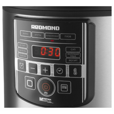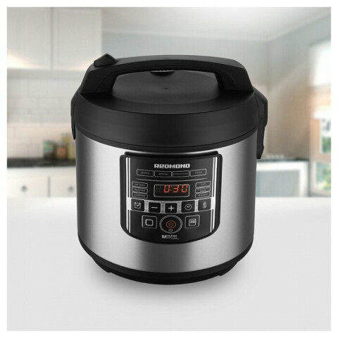 Бренд: REDMONDчаша 5 л с керамическим покрытием, программы: мультиповар, молочная каша, жарка, приготовление на пару, выпечка, тушение, плов, йогурт, крупа, пастеризация, отложеный старт, поддержание тепла, Sous-Vide, мощность: 860 Вт, электронное управление
