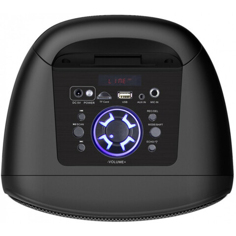минисистема, без оптического привода, радиоприемник FM, поддержка форматов MP3, воспроизведение с USB, подключение: Bluetooth, линейный аудиовход, функция караоке