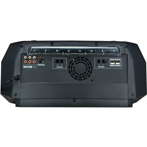 минисистема, акустика 2.1, суммарная мощность 5000 Вт, воспроизведение CD, радиоприемник FM, поддержка форматов MP3, воспроизведение с USB, подключение: Bluetooth, линейный аудиовход, функция караоке, подключение наушников