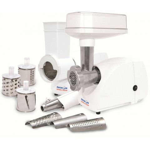 мощность 160 Вт, перерабатывает 0.5 кг/мин, насадка для шинковки, диск для фарша, корпус из пластика, шнековая соковыжималка